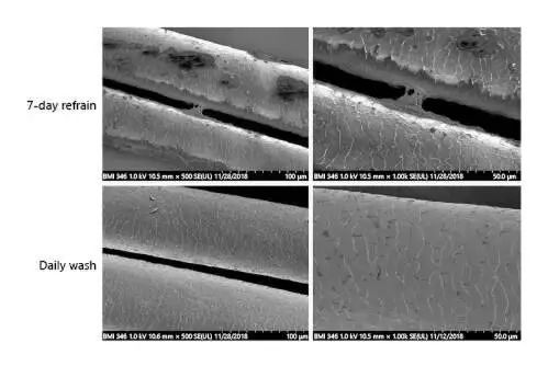 研究者发现,与 7 天不用洗发水的人相比,每天洗头会让头皮的总体头皮表面脂质和皮脂脂肪酸含量显著降低。即使受试者不是头屑脱落水平较高的头皮屑患者,每天清洗也会降低脱屑水平,而且就连头皮气味也会随之变好。