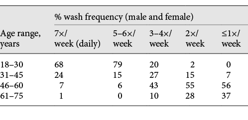 同时,对头发而言,因为保护性角质层屏障在功能上更有效,从而减少了水蒸气的吸收,再结合研究中的受试者自我评估,也发现了洗头频率越高,头发状况也明显更好的结论: